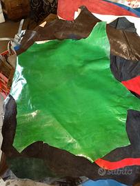 Lotto Pezzi di pelle anche scamosciata di varie misure a lotto per lavori artigianali, borse accessori o rivestimenti, per esempio selle di bici o moto moltissimi pezzi di varie misure