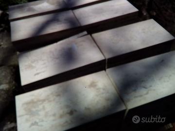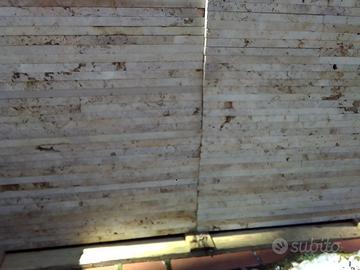67 m² vera pietra marmo travertino laziale rosato in lastre 30x60 + 30x30 spesso 2 cm NUOVO e pulito, ottimo per restauri storici, bioedilizia, con la matericità severa e romana del taglio a 90°. È più di quanto mostrato nelle foto. Alcune lastre non hanno fori, altre ne hanno di spettacolari e scenografici: sono le migliori, da NON stuccare. Ogni lastra ben solida. Pagato 2600 euro, vendo a 1000 intrattabili (oppure 3 euro per lastra singola). Altamente consigliabile il ritiro, cui posso collaborare. Possibile consegna con grande pazienza.