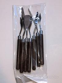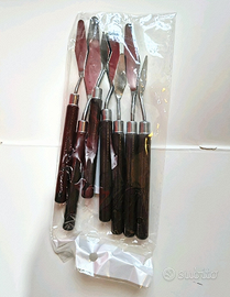7 spatole per pittura lama in acciaio manici in legno varie forme e dimensioni nuovi ancora imbustati per varie tecniche pittoriche e quant'altro molto resistenti