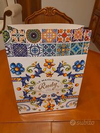8 BORSINE in cartoncino sottile colorato lucido Le Maioliche Vendo 8 BORSINE in cartoncino sottile colorato lucido. Le Maioliche. NUOVE, mai usate. Condizioni perfette. Materiale: cartoncino sottile, colorato, lucido. Colori fantasia rosso, giallo, verde, blu, azzurro, viola. Molto eleganti, fantasia ripresa anche da Dolce & Gabbana Dimensioni: larghezza 22 cm profondita' 11 cm altezza 29,5 cm