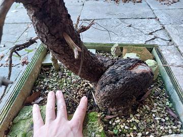 Bonsai di abete, pianta in eccellenti condizioni. attualmente su vaso 44x44 cm. La pianta ha un altezza di 125 cm la base contorta ha una dimensione di circa 150x160mm il tronco appena dopo la basa ha un diametro di circa 70mm.