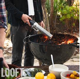 Looftlighter è un accenditore elettrico, una novità assoluta che consente di accendere il fuoco del tuo camino, barbecue o forno pizza in 60 secondi. Accende ogni tipo di combustibile senza che siano necessari prodotti chimici: ti basterà premere un pulsante!