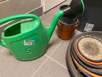 Vendo vasi, sottovasi, annaffiatoio da 5 litri (tutto in plastica dura è super resistente) e paletta