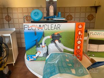 Vendo accessori per piscina. Filtro a sabbia completo di tubazioni, retina, scaletta, erogatore di cloro, aspiratore, sabbia e gomma per appoggiare i piedi. Gli articoli sono in buono stato.