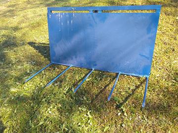 Usato al posto della barra falciante per raccogliere, spingere fieno o arbusti tagliati di vario genere facendo un filone o un mucchio senza fatica fisica.