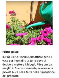 L'irrigazione automatica durante le vacanze è costituita da acqua contenente cellulosa, che consente di essere assorbita gradualmente dalla pianta in modo da non doversi preoccupare di annaffiare fino a 30 giorni (varia in base alla temperatura e al fabbisogno idrico di ogni pianta).