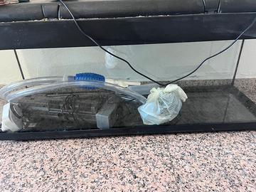 Acquario usato ma tenuto bene con pompa lampada a led mangiatoia con sassi grossi Lunghezza 100 Altezza 40 profondità 30