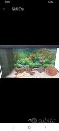 Acquari predisposto per acqua dolce ,manca reattore per i neon,reperibile in un qualsiasi negozio elettrico o rivenditore acquari a modico prezzo. Completo di mobile e accessori interni come foto.Misure del solo acquario L.100cm. P.45cm. H.45cm.