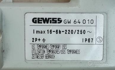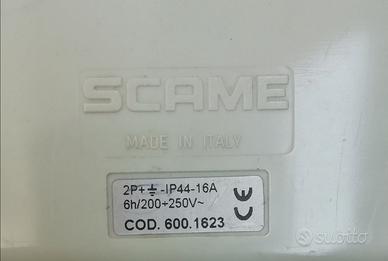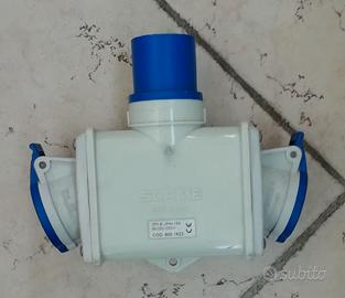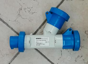N. 2 adattatori/moltiplicatori industriali a 2 uscite Gewiss GW64010. I max 16 - 6 h - 220/250, 2P+, IP67. N. 1 adattatore I dustriale sdoppiatore Scame, Modello 600.1623. 2P+ - IP44 - 16 a, 6h/200 - 250 V. Made in Italy. N. 1 adattatore semplice Scame 610380, 250 V - 16 A. Il prezzo è relativo all'intero lotto.