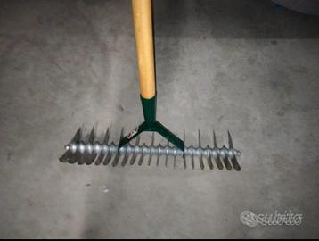 Aeratore per prato 32 denti, con manico originale da 180 cm