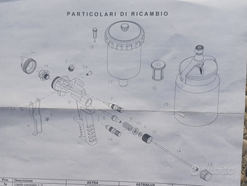 Vendo causa inutilizzo aerografo professionale ANI mod. Astra Lux/I con accessori. Bicchiere inferiore in metallo, n. 2 ugelli diam. 2.5 e 1.5, predisposto anche per bicchiere superiore, chiave montaggio, scovolini e spazzolino. PERFETTAMENTE PULITO E FUNZIONANTE.