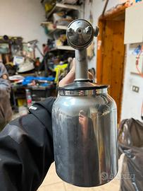 Vendo aerografo professionale con ugello in acciaio inox con serbatoio inferiore. Ha un ammaccatura leggera parte destra.