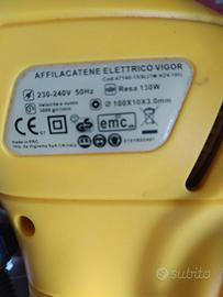 Vendo Affilacatene Elettrico Vigor, modello 130W, perfetto per motoseghe. Usato pochissimo, praticamente come nuovo. Potenza 130W, velocità 3000 giri/min. Ideale per affilare rapidamente e con precisione la catena della motosega. Completo di base per il fissaggio. Ritiro a mano