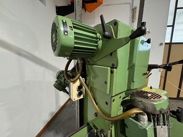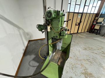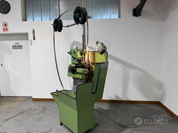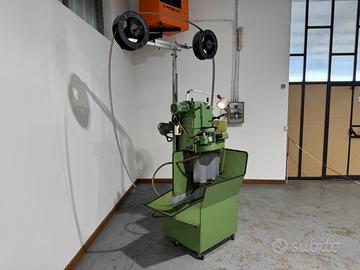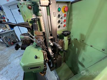 MACCHION ATTREZZATURE S.a.s. Centro affilatura - Commercio macchine per legno Video e foto su: INSTAGRAM: Macchion_Attrezzature FACEBOOK: Macchion Attrezzature WEB: macchion.it PAGAMENTI RATEIZZATI – NOLEGGIO. Codice Articolo: UC 07 – usato controllato. Affilatrice automatica per lame a nastro PG L. Progettata per affilare lame per taglio legno, bimetalliche, plastica, alimentari, ecc. Macchina robusta e stabile per la massima precisione di regolazione. Sistema di avanzamento del nastro antivibrazioni. In nastro viene affilato con sviluppo verticale per ridurre gli ingombri. Questa macchina in particolare ha il sollevamento del gruppo ruote motorizzato. Velocità della mola a regolazione variabile. Velocità dell’avanzamento a regolazione variabile. Commutatore per eseguire dente standard o spaziato. Impianto di raffreddamento con pompa e vasca di raccolta dell’acqua per eliminare le polveri in sospensione e non scaldare la lama in fase di affilatura ottenendo sempre denti non bruciati con la massima capacità di taglio. Larghezza del nastro: 10 – 80 mm. Passo dente: 1 – 30 mm. Spessore nastro: 0,4 – 2 mm. Motore mola: 0,50 Kw. Motore avanzamento: 0,5 Kw. Motore pompa: 0,10 Kw. Velocità battute: 9 – 100 Diametro mola: 150 mm. Foro mola: 20 mm. Spessore mola: 0,5 – 16 mm. Peso: 180 Kg. Dimensioni: cm 120 x 80 x 200h. Il prezzo indicato di € 5.900 è imponibile netto fatturabile a rivenditore o per export.