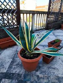 Ho 3 agave variegate da vendere, sono abituate al freddo, vivono bene a Milano da 4 anni. Ora devo cederle. Le dimensioni di due sono circa 50 cm di altezza pianta (80 cm circa con vaso) per circa 70-80 cm di ampiezza . Una invece, quella con il vaso bianco siciliano, più piccola e con una pianta di peperoncino piccante rifiorente ogni anno, di altezza 40 cm (60 con il vaso) e larghezza circa 60 cm.