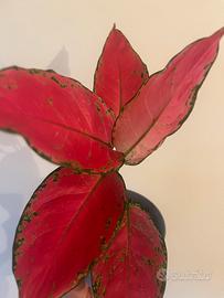 Pianta d'appartamento Aglaonema con foglie color rosa ciliegia.