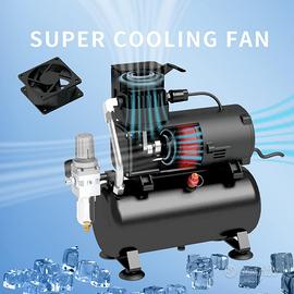 Doppia ventola di raffreddamento per un lungo funzionamento continuo (testata e nell'alloggiamento del compressore), 40% in meno di temperatura