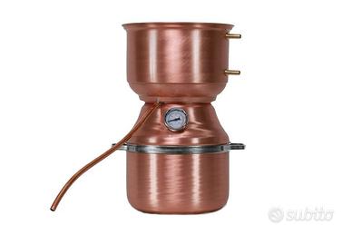 Questo alambicco distillatore in rame da 15 litri rappresenta l'eccellenza dell'artigianato italiano, progettato per offrire prestazioni superiori nelle distillazioni artigianali. Realizzato interamente in rame puro, è l'attrezzo perfetto per ottenere oli essenziali, essenze naturali, profumi artigianali e distillati alcolici come gin, grappa, vodka, e altri liquori pregiati. Grazie alla sua struttura robusta e al design elegante, si inserisce perfettamente in ogni laboratorio o cucina che desidera un prodotto altamente funzionale e di qualità.