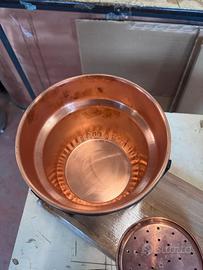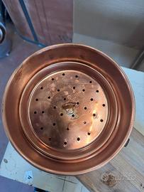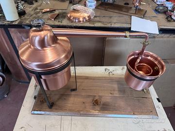 Alambicco distillatore da 2 litri con base in legno e filtro purea interni, termometro e piedistallo in acciaio, rame uso alimentare, tubi serpentina uso sanitario, prodotto Made in Italy, spedizione in tutta Italia, contrassegno accettato, oppure spedizione tramite subito.