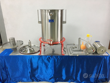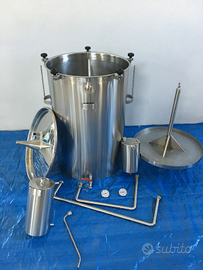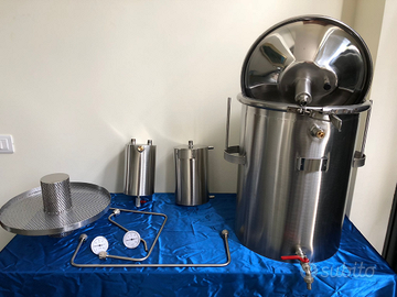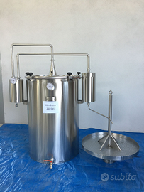 Alambicco - Estrattore olio essenziale in acciaio inox completo di deflemmatore, termometri, vaglio, valvola di sicurezza e scarico liquidi nella caldaia, costruiti da maestri artigiani in Italia.