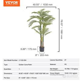 Albero Artificiale, 1,98 m Alta Pianta Finta Palma di Canna Dorata Realistica, Materiale PE di Qualità e Protezione Anti-Ribaltamento con Vaso, Decorazione per Casa Ufficio Interno ed Esterno Materiale PE di Alta Qualità: certificato dai test sui materiali Proposition 65 della California, la nostra pianta alta è dotata di un materiale PE che garantisce facilità di pulizia e manutenzione e offre durata e impermeabilità. Sentiti a tuo agio nel metterli a casa tua, sapendo che soddisfano standard rigorosi.