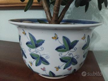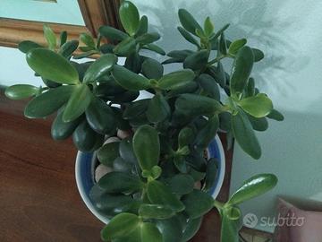 pianta crassula alt.28cm .vaso 26 x 16cm ceramica dipinta. V.arco di travertino MetroA. scambio a mano.