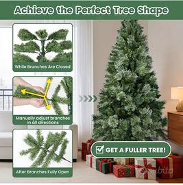 Albero di Natale Artificiale in PVC 165cm con 800 Punte, 3 Sezioni per Montaggio Facile, Compatto, Base in Metallo