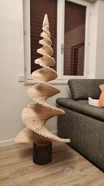 Albero di Natale in legno, completamente fatto a mano su misura in legno piallato a mano e base in tronco di castagno.