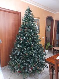 Albero di Natale come nuovo completo di pigne e bacche altezza 2,30 -2,40 . è disponibile anche il tappeto verde effetto erba da mettere a terra e anche la serie di 500 minillucciole luce a LED bianca e addobbi rossi e dorati . tutto completo 85 euro . Solo l albero 50 euro .