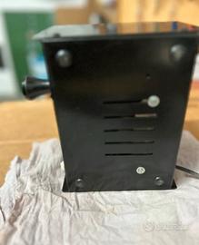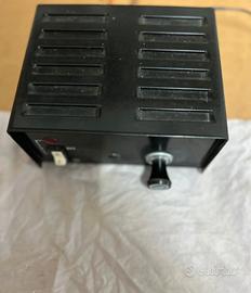 Il dispositivo è un alimentatore o trasformatore che converte la tensione di rete (AC) in corrente continua (DC) a 12V, tipica delle prese accendisigari per auto. Il pannello di controllo ha un interruttore ON/OFF, una spia luminosa rossa che indica il funzionamento e un accendisigari integrato. Il simbolo sull'accendisigari è un'icona standard che rappresenta la presa accendisigari da 12V presente nelle automobili. Dispositivi simili sono spesso usati per testare o alimentare accessori per auto (come compressori, caricatori o navigatori) al di fuori del veicolo. Artico perfettamente funzionante