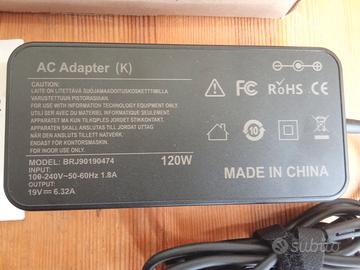 Alimentatore AC per dispositivi elettronici. - Modello: BRJ90190474 - Potenza: 120W - Input: 100-240V~50-60Hz 1.8A - Output: 19V 6.32A - Made in China