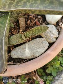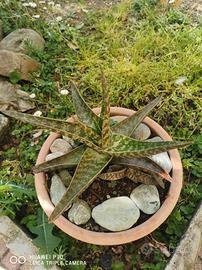 Vendo splendido esemplare di Aloe maculata (sin. Aloe saponaria), una pianta succulenta robusta e di grande impatto visivo. Caratterizzata da rosette di foglie carnose, larghe alla base, di un colore verde scuro intenso con caratteristiche macchie più chiare e bordi seghettati. È una pianta molto decorativa, ideale sia per interni luminosi che per esterni. Pianta adulta, sana e ben radicata. Venduta in vaso di terracotta con elegante finitura in sassi bianchi. Sta già producendo nuovi germogli, ideale per chi desidera moltiplicarla! Molto resistente alla siccità, richiede un'esposizione luminosa e pochissima acqua. Evitare ristagni idrici. Disponibile per ritiro a mano a Milano