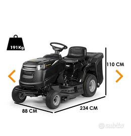 Cesto di raccolta, Taglio mulching opzionale, Muso anteriore, Modello Motore ST 350, Cilindrata 352 cm3, Potenza nominale 11.5 HP, Superficie consigliata 3000 m, Larghezza di taglio 84 cm, Numero di lame 2, Capienza cesto di raccolta 200 I, Taglio in retromarcia, Azionamento lame elettromagnetico