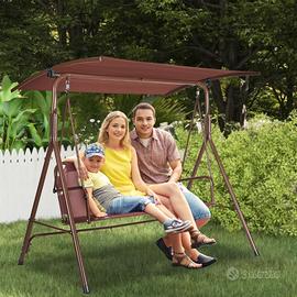 Altalena da Patio per 3 Persone Regolabile Marrone