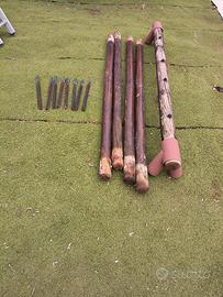 altalena in legno completa di seduta con cuscino e paletti