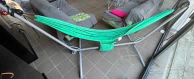 Vendo amaca in ottime condizioni con base di sostegno ideale per interno ed esterno.