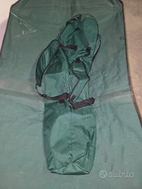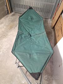 amaca con supporto pieghevole e sacca per il trasporto, sicuramente da pulire e in garage da parecchio tempo, usata un paio di volte. Misure aperta 217 cm da anello ad anello, chiusa 15x101 cm. Visto le dimensioni è preferibile il ritiro a mano!
