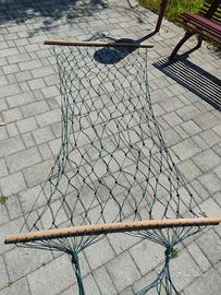 amaca fai da te da giardino. necessita solo delle apposite fasce da legare agli appropriati tronchi. o sostegni. lunghezza 2,20 cm,larghezza 1,32cm