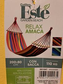 Vendo amaca di cotone robusto con bastoni in legno di irrigidimento antiribaltamento e cappi per la tenditura.