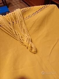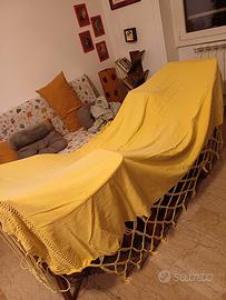 Amaca vintage in cotone di colore giallo. - Finitura con frange e dettagli all'uncinetto. Misure: 150x240 (solo stoffa, escluse le frange)