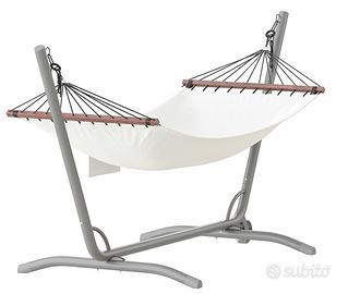 Amaca in legno FREDON con supporto in acciaio verniciato e ruote GARON. Prodotti IKEA.