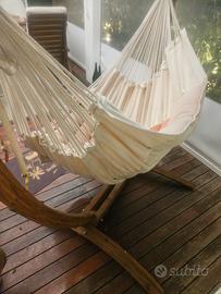 causa trasloco vendo amaca con seduta singola ma allungabile struttura legno perfetta comprata in Olanda dal produttore livello dei materiali molto elevato