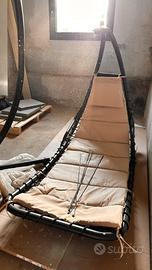Vendo amaca a dondolo da giardino, il mio non ha il tendalino parasole come quello della foto, mai utilizzato alcuni segni presenti sono dovuti dal traporto quando l ho acquistato. È da smontare, per chi fosse interessato per misure ecc mi cottati