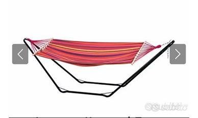Amaca con supporto in acciaio verniciato Tubi resi leggermente opachi dal sole Telo perfetto. Favaro Veneto.