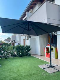 Salve da titolo vendo ombrellono da esterno riotabile e inclinabile, le piastelle non sono comprese.. le misure dell'ombrellone sono 2.40 x 2.40. Astenersi i perditempo .