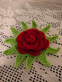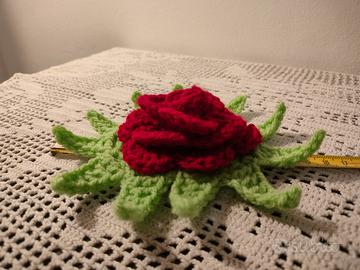 Bellissima rosa decorativa realizzata interamente a mano all'uncinetto con lana acrilica di alta qualità.