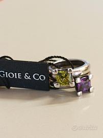 VENDO PER ERRATO ACQUISTO, ANELLO "da Cocktail" con Pietre Grezze Semipreziose, Colorate e Misura della Gemma è Grande. Pietre spostate in diagonale. Colore delle Gemme: Viola (Melanzana) molto simile ad Ametista. Nonché Verde (Verde Salvia). ANELLO NUOVISSIMO; MAI INDOSSATO in quanto stretto causa frattura dita della mano sinistra. Anello prezioso; NUOVO, molto bello e d'effetto!!! Acquisto effettuato presso: Argenteria BERNI - Firmato: GIOIE & CO! - MISURA Diametro INTERNO dell'anello: 17 mm. È in vendita per EUR. 75