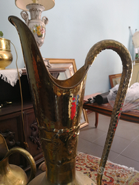 Anfora brocca vaso Ottone antico massiccio lavorato a mano artigianato artigiano. Disponibili 2 vasi Ottone antico massicci lavorati, quello grande misure altezza quello grande 95 cm e altezza piccolo 50 cm,il prezzo è per singolo pezzo.
