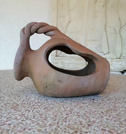 Anfora aperta con manico intrecciato h31x21 Terracotta Umbra Deruta fatta a mano. Disponibile per la spedizione.