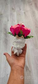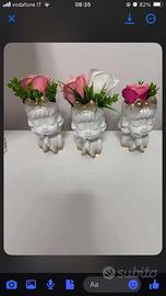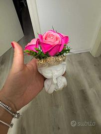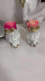 Angioletti con le Rose Di Sapone che durano per anni vari colori disponibili su richiesta. Prezzo per l’angioletto con una rosa 10 € con tre rose 13 €.